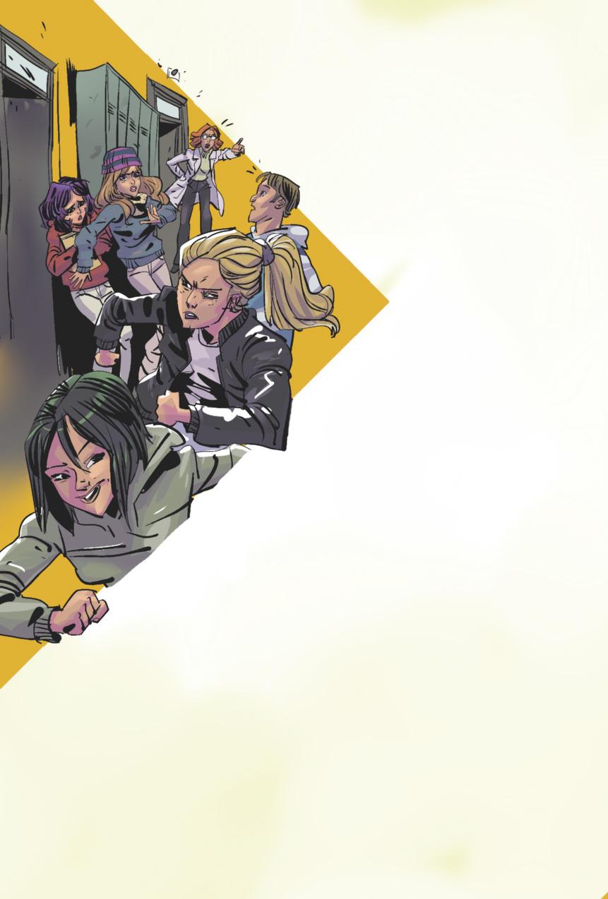 “What’s going on here?” Ms. Rose, the computer teacher, walks out of the computer room. She looks at Sam Brown and the others. “You! Go.” The students run away quickly.