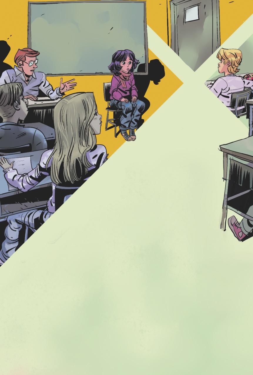 Janie and the other students look at Aisha. She’s at the front of the classroom with Mr. Bale. She’s a short girl, with black curly hair and big brown eyes.