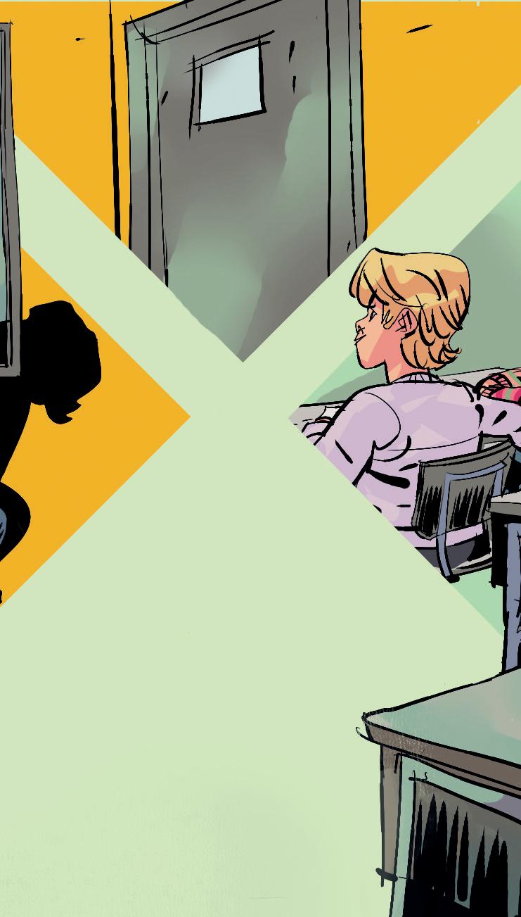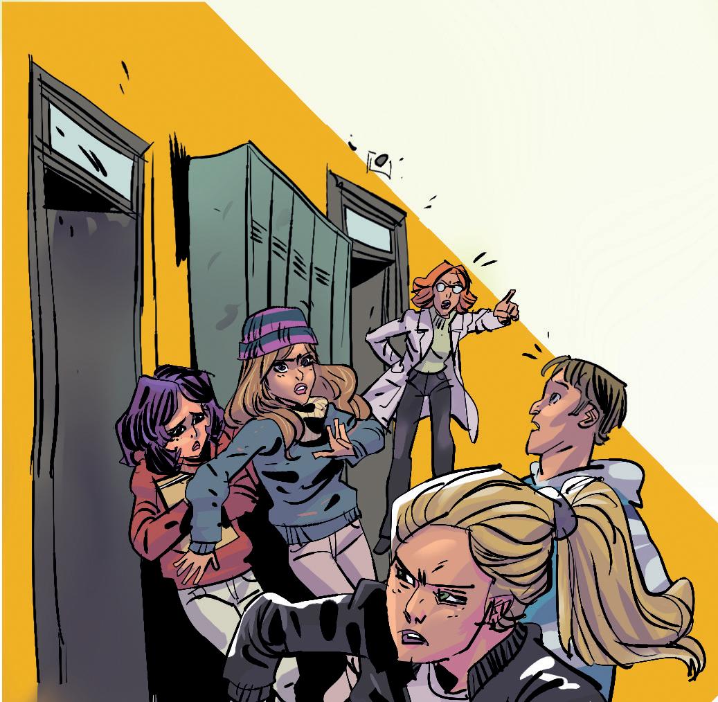 “What’s going on here?” Ms. Rose, the computer teacher, walks out of the computer room. She looks at Sam Brown and the others. “You! Go.” The students run away quickly.