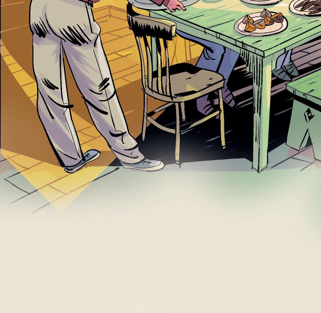 “You eat with us?” Mrs. Homsi says to Janie. Janie smiles: “Yes, please.”