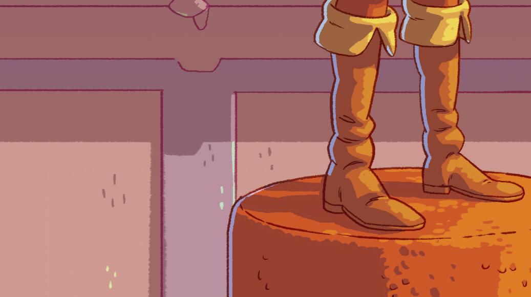 The swallow sits down between the prince’s feet. He looks up at the gold statue.