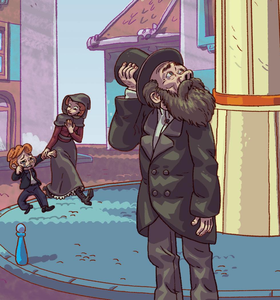 A sad man looks up at the statue, too. “Well, the prince is happy. It’s good that some people are happy in the world,” he says.