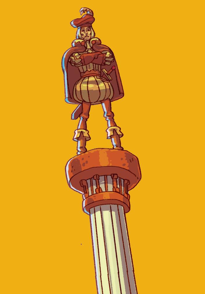 He flies over the city and then he sees the statue of the prince. “I can sleep here!” he says.