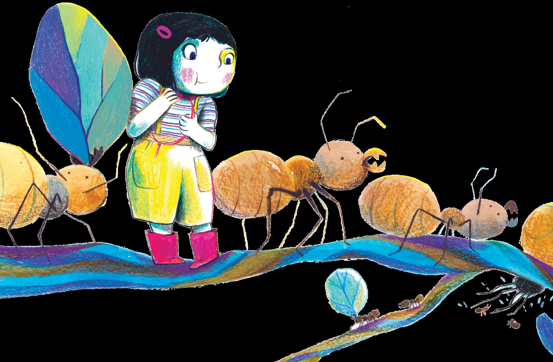 No primeiro livro infantil da premiada autora Natalia Borges Polesso, acompanhamos a menina e seus pais durante um passeio. A família aguarda a chegada do bebê, um irmãozinho para a menina. Ele observa tudo da barriga pontuda da mãe e está quase para nascer, e o mundo parece enorme. Mas, nesse vasto mundo, por vezes um pouco assustador, há uma irmã ansiosa para brincar com ele no parque ao sol — ao lado de bichos pequeninos, como as formigas, e cheios de pernas, como as aranhas.