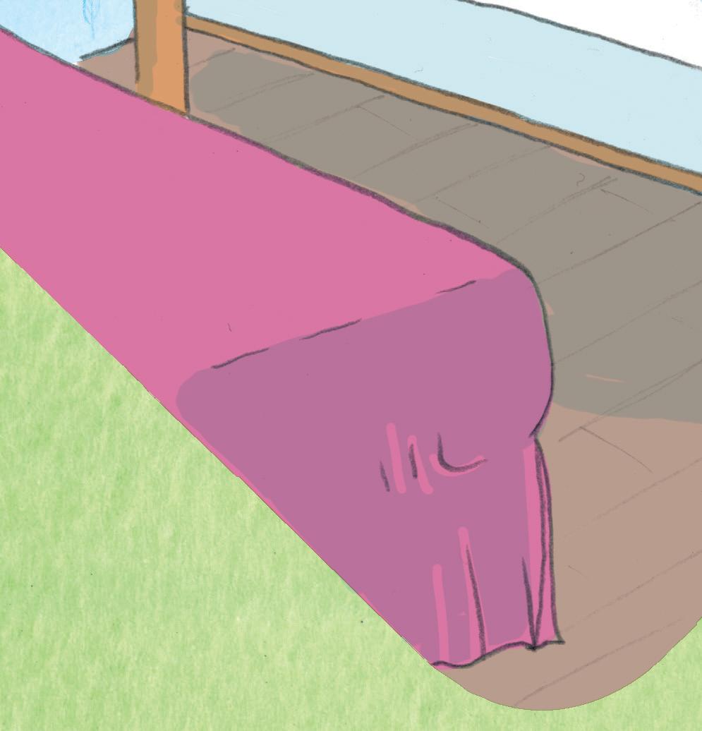 SHE SITS DOWN ON MOMMY BEAR ’ S BED. IT ’ S VERY SOFT.