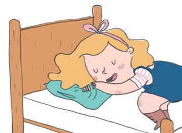 “ THIS BED IS GREAT, ” SAYS GOLDILOCKS. GOLDILOCKS SHUTS HER EYES. SHE IS SLEEPING.