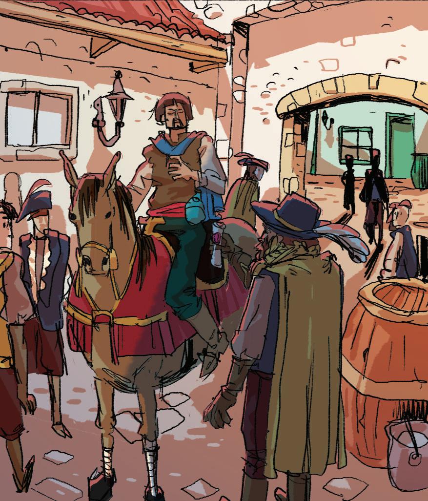 A few days later, d’Artagnan arrived in the town of Meung. There, he met a man with a scar on his face.