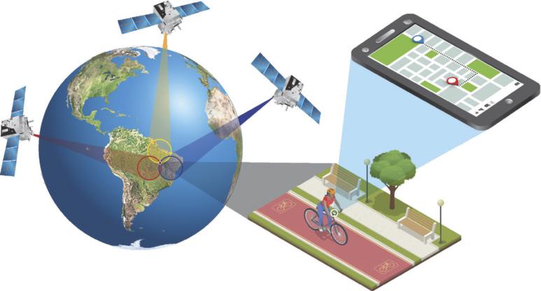 os aparelhos ou aplicativos que o utilizam podem ajudar as pessoas a traçar caminhos e encontrar rotas para diferentes destinos. O GPS pode ser usado em aparelhos como celulares, tablets e computadores, além de veículos como carros, aviões e navios. Ele funciona por meio de sinais enviados e recebidos por satélites artificiais que giram em torno da Terra. Esses satélites são produzidos pelo ser humano para, entre outras funções, se comunicar com os aparelhos na Terra, o que possibilita indicar a localização pelo GPS com boa precisão.