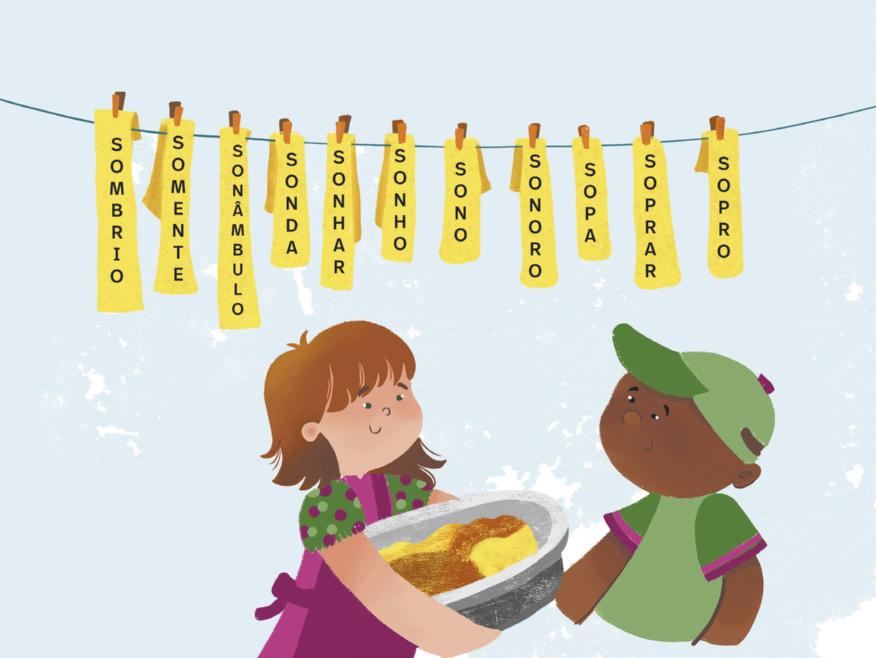 atitudes que devem acompanhar os estudantes em suas produções e pesquisas, ampliando sentidos e descobertas. Montar com a turma um varal com diversas palavras expostas usando barbante, prendedores de roupa e cartolina. Não se esquecer de, durante a reorganização da sala, cuidar da acessibilidade, da segurança e da participação de estudantes com Necessidades Educacionais Especiais(NEE).Manterosespaços entre as carteiras livres, permitindo a circulação de cadeiras de rodas, andadores ou acompanhantes, evitando objetos que dificultem a locomoção. Deixar os objetos de uso contínuo e diário sempre no mesmo lugar, para facilitar a autonomia. Antes da leitura, propor uma visualização transversal dotexto,chamandoaatenção para a estrutura e a organização visual características do gênero verbete de dicionário. Reconhecer alguns elementos visuais – como palavras em destaque, organização em lista, ordem alfabética, uso de negrito,itálicoeabreviações–é essencial para que os leitores identifiquem rapidamente o gênero. Em seguida, solicitar a leitura silenciosa e, depois, realizar a leitura compartilhada. Nesse momento, propor uma brincadeira: um estudante deve se levantar, escolher um verbete no varal e ler sua acepção em voz alta. Aproveitar esse momento para observar se a escolha dos verbetes seguirá uma ordem alfabética ou não e comentar de acordo com a escolha da turma. Por fim, propor uma conversa sobre as dificuldades encontradas na atividade. Comentar que é comum sentir desconforto ao ler em voz alta, valorizando as contribuições dos estudantes.