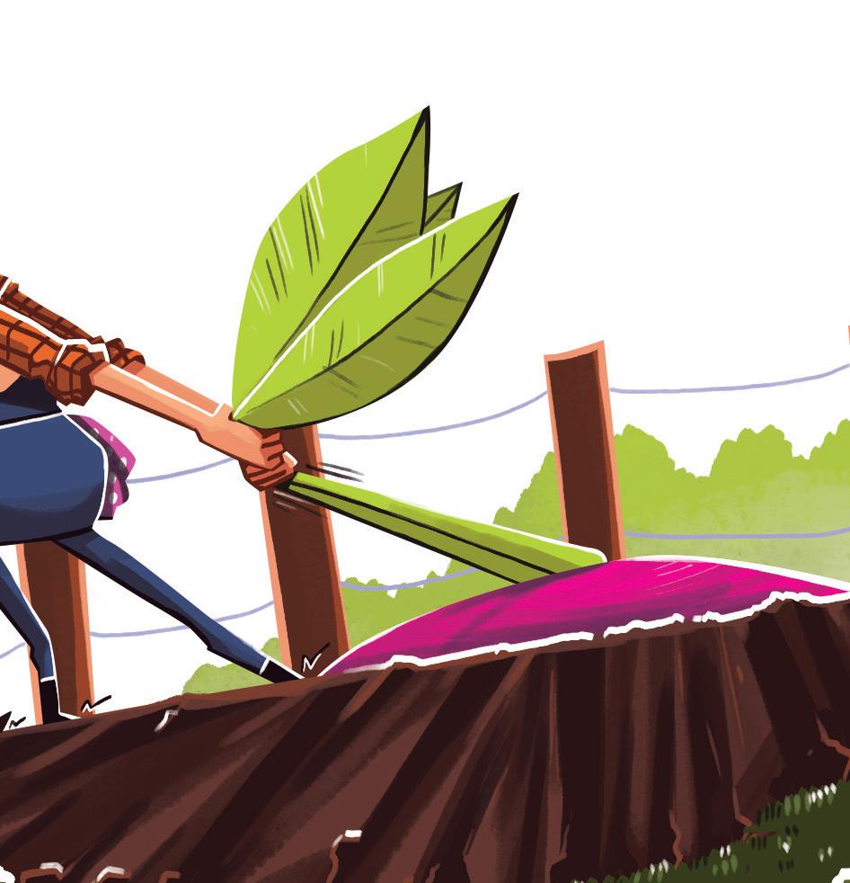 HE PULLS THE LEAVES, AND HE PULLS THE TURNIP.