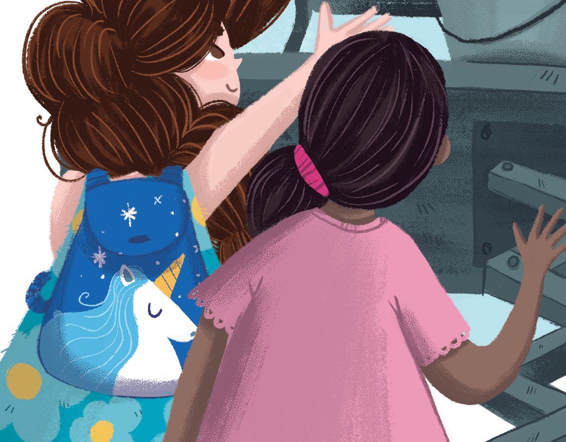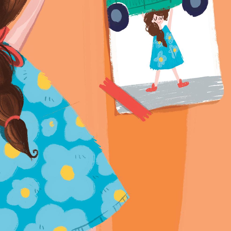 I see Juliana, my friend, at the mall. She is with her brother and grandpa, but she is very sad. She has a problem.