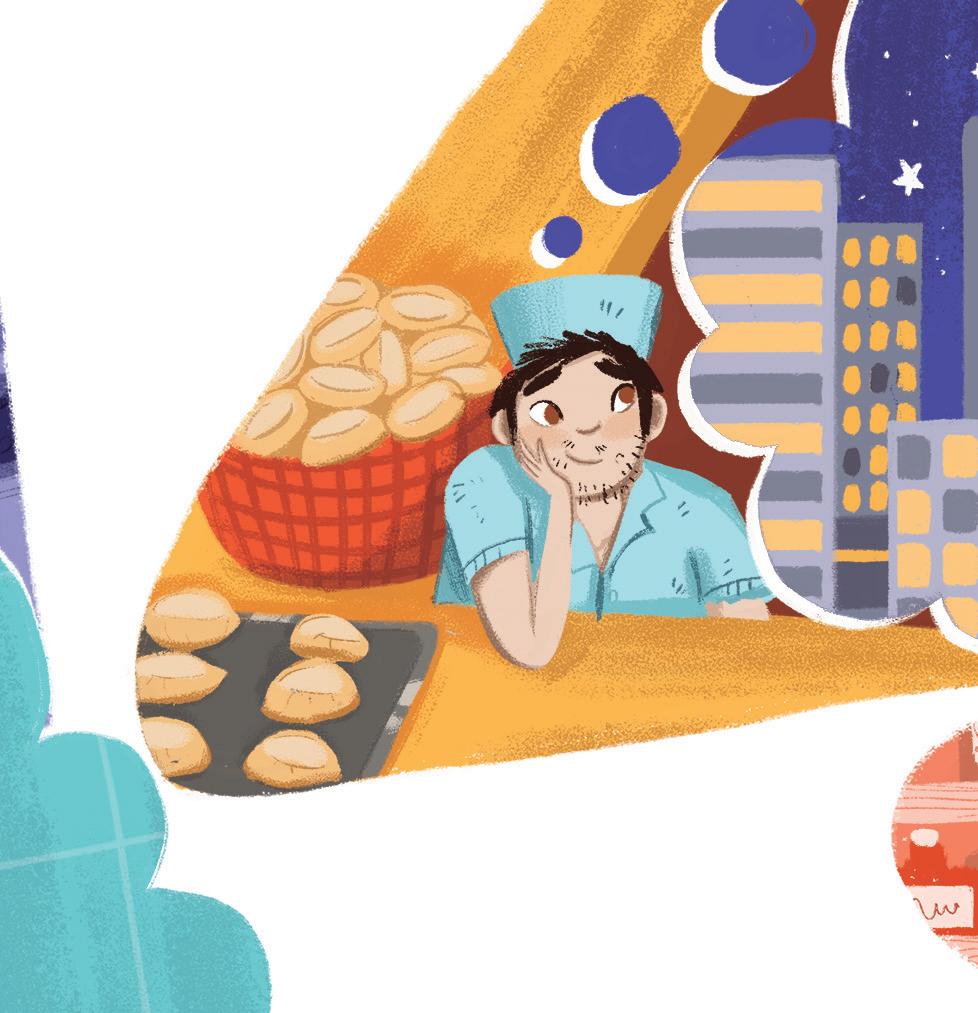 “I want to be very, very tall,” says a man in a bakery. “I want to get very tall and touch the moon and the stars.”