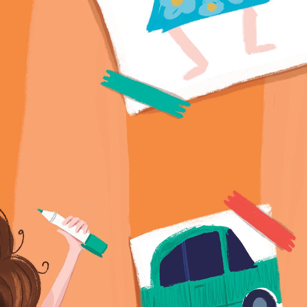 Draw two things that you can see at the mall. Write what they are. Personal answers.
