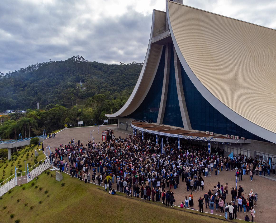 oSantuário Santa Paulina, segundo maior do Brasil e referência em turismo religioso, comemora 20 anos de dedicação de seu templo em Nova Trento, Santa Catarina. O lugar foi idealizado após a beatificação de Santa Paulina em 1991 e teve sua obra iniciada em 2003, ano seguinte à canonização. O projeto do templo foi concebido para retratar a mística da trajetória de vida de Santa Paulina, com geometria que remete a duas mãos em oração, reforçando a espiritualidade e o sentido de acolhida. Com cerca de 7 mil m² de área construída, tem capacidade para 3.000 fiéis sentados e mais 3.000 em pé, refletindo sua importância como espaço de peregrinação e grandes celebrações. além disso, o Santuário está inserido em um parque ecológico com bosques, cachoeiras e trilhas, onde natureza e fé se complementam. informações: santuariosantapaulina.org.br