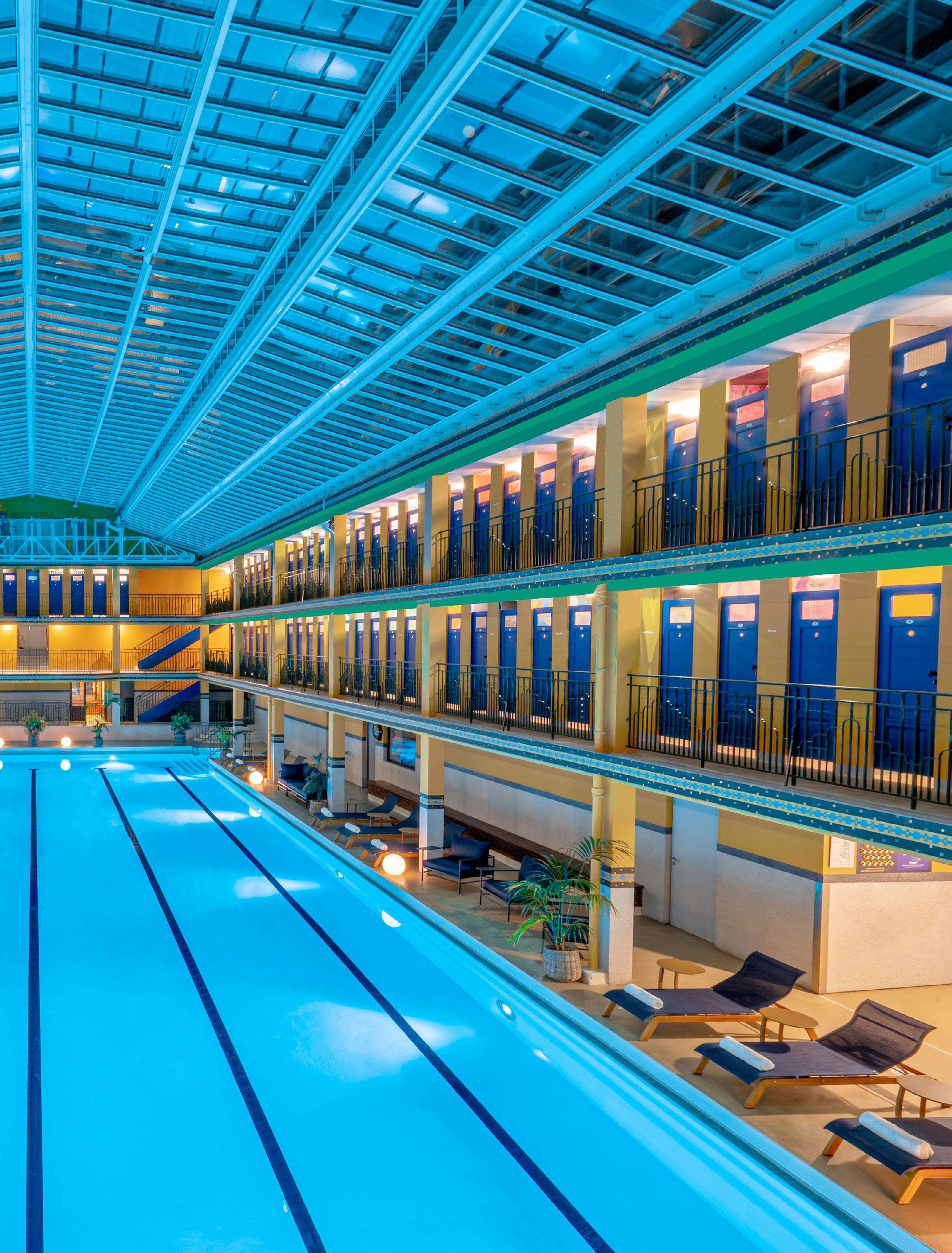 A piscina interna com sua luz filtrada por janelas altas e estrutura envidraçada era um convite ao hedonismo elegante dos anos 1930. Durante décadas, o molitor representou o espírito livre e glamouroso de Paris.