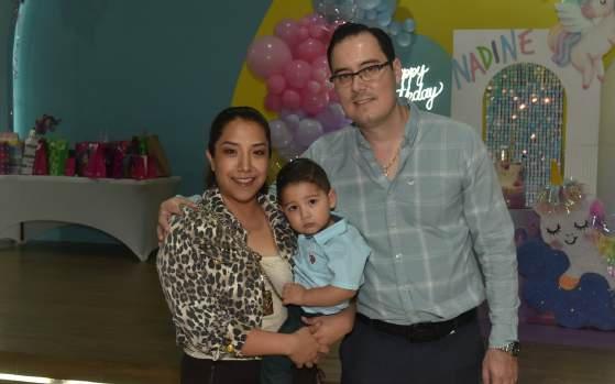 Nadine junto a sus papás, Victoria Russell Celis y Carlos Elias Hernández.