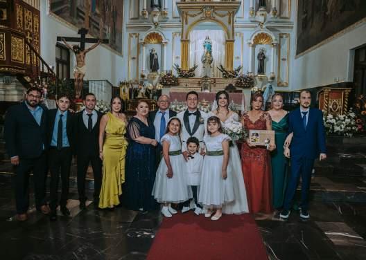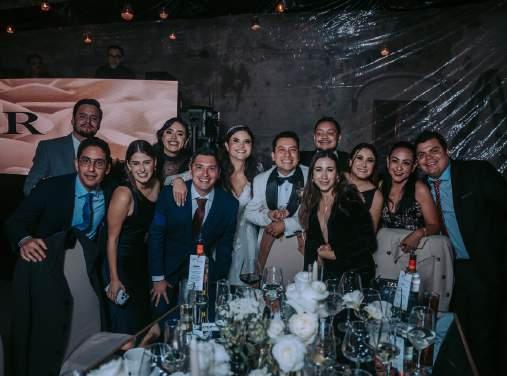 David Basurto, Julieta Gutiérrez de Velasco, José Ramón Gutiérrez de Velasco, Claudia Beltrami, Bory Barrios, Luis Audirac, Mariana Audirac, Marigel Audirac, Óliver Albarrán, con los novios Melissa Audirac y Eduardo Gutiérrez de Velasco.