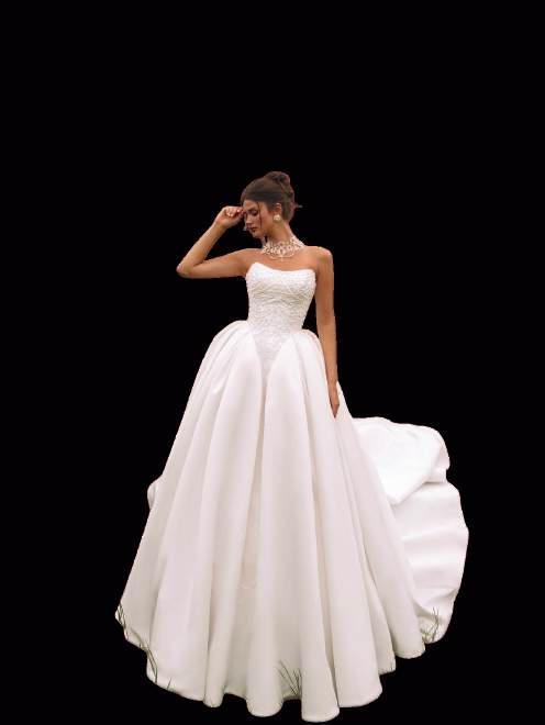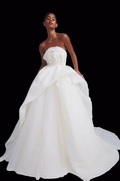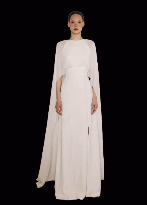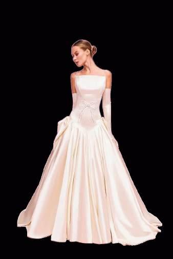 La novia 2026 se inspira en la alta costura. Vestidos modulares con mangas y faldas desmontables permiten una silueta en constante transformación. Bordados florales en 3D, volúmenes etéreos y reinterpretaciones de las líneas princesa y sirena definen una feminidad fuerte, versátil y segura de sí misma.