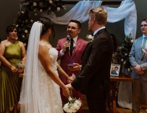 Andrea Montero Tavizón y Johnatan Cerna Sampieri. La boda religiosa se realizó en la parroquia de San Charbel, lugar donde estuvieron acompañados de familiares y amigos para ser testigos de este enlace. Posteriormente todos los invitados disfrutaron de una inolvidable velada en un salón de Playa de Vacas.
