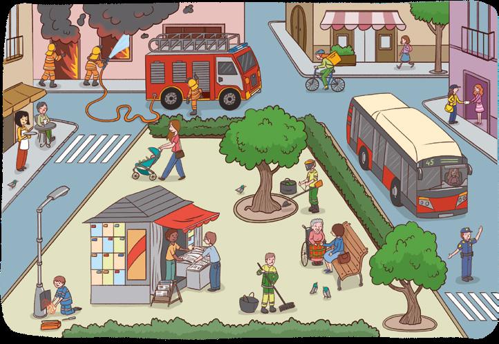 D Conec les professions de les persones que treballen per al bon funcionament de la població.
