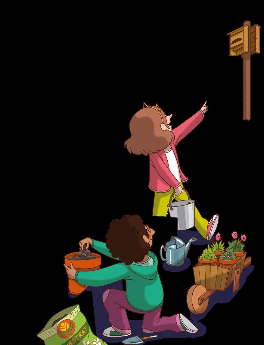 Quin és l’animal més curiós que coneixes? AQUEST HORT TÉ UNA PATRULLA ANTIMOSQUITS! SÍ, ELS RATPENATS! CULTURA CIENTÍFICA 7 set Per parelles, porteu aquest material: Vols fer néixer una planta? 4 Ara les llavors hauran germinat. Traieu-les dels pots amb cura. 5 Llenceu les que no tinguin arrel. 6 Netegeu els pots torneu a repetir els passos 1, 2 i 3. 7 Al cap de 10 dies, tindreu unes plantetes ben precioses! 8 Si voleu, podeu plantar-les en un test. – Dos pots de vidre – Un paquet de cotó fluix – Un grapat de dos tipus de llegums. – Un polvoritzador d’aigua. 1 Ompliu els pots amb el cotó fluix humitegeu-lo amb aigua. 2 Col·loqueu les llavors, d’una en una, en els pots, i torneu a polvoritzar el pot. 3 Deseu els pots en un lloc on no els toqui el sol directament. Polvoritzeu diàriament durant cinc dies. SAPS COM NEIXEN LES PLANTES? NO. HO HAUREM DE PREGUNTAR. 72 UNITAT 5