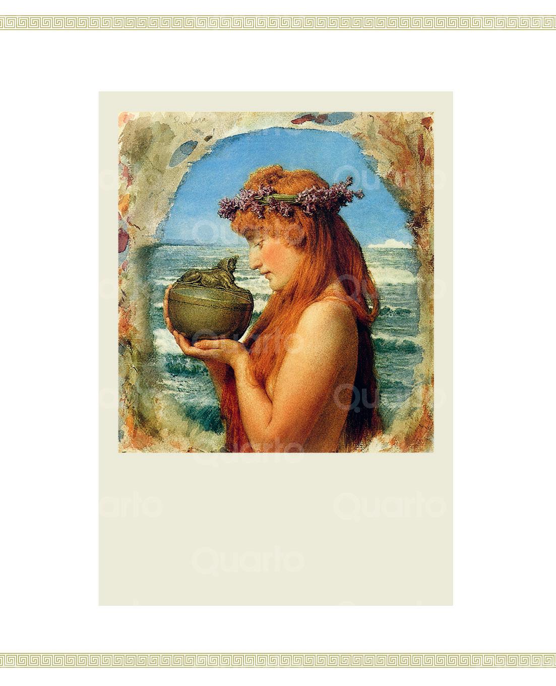 La Pandora (1881), de Lawrence Alma-Tadema, piensa si debe o no abrir su famosa caja. Según las fuentes clásicas, en realidad se trata de un pitos o jarra de grandes dimensiones. En esta obra, como en muchas