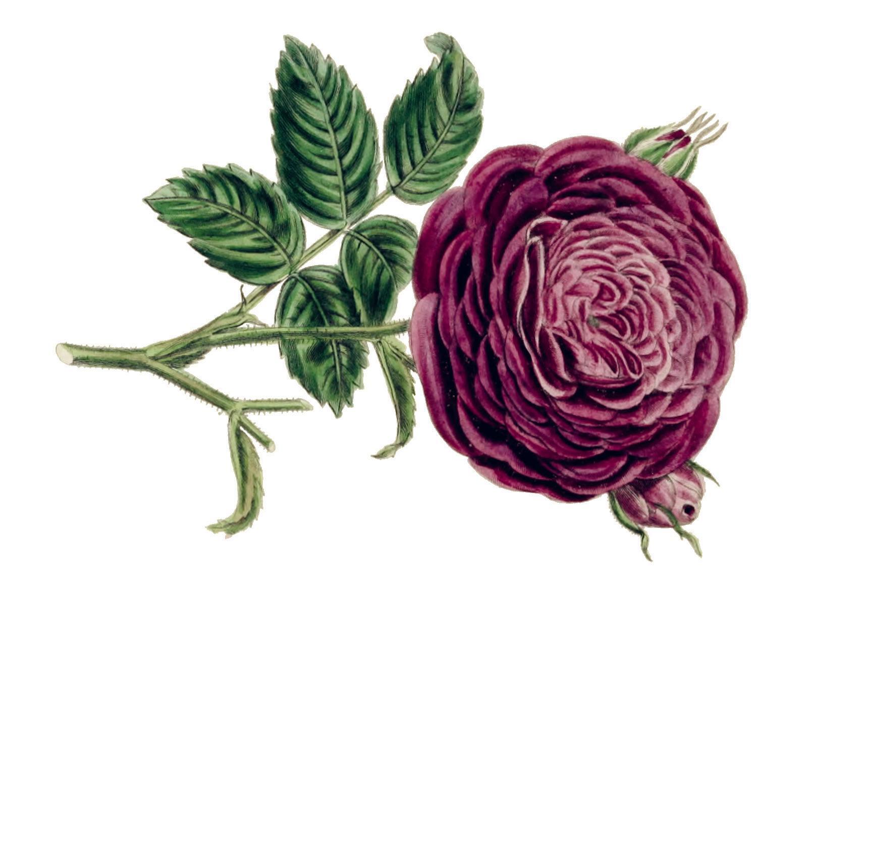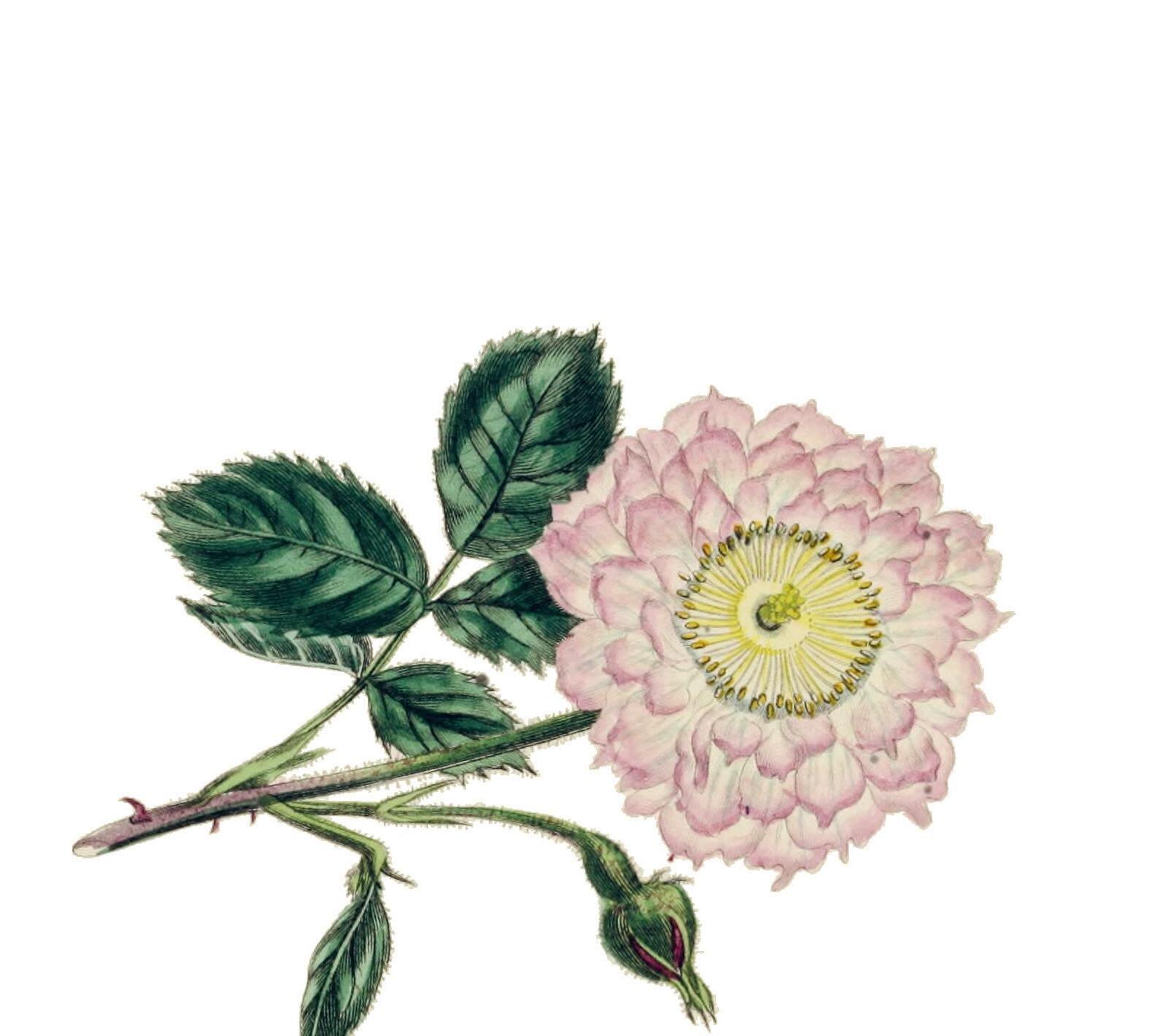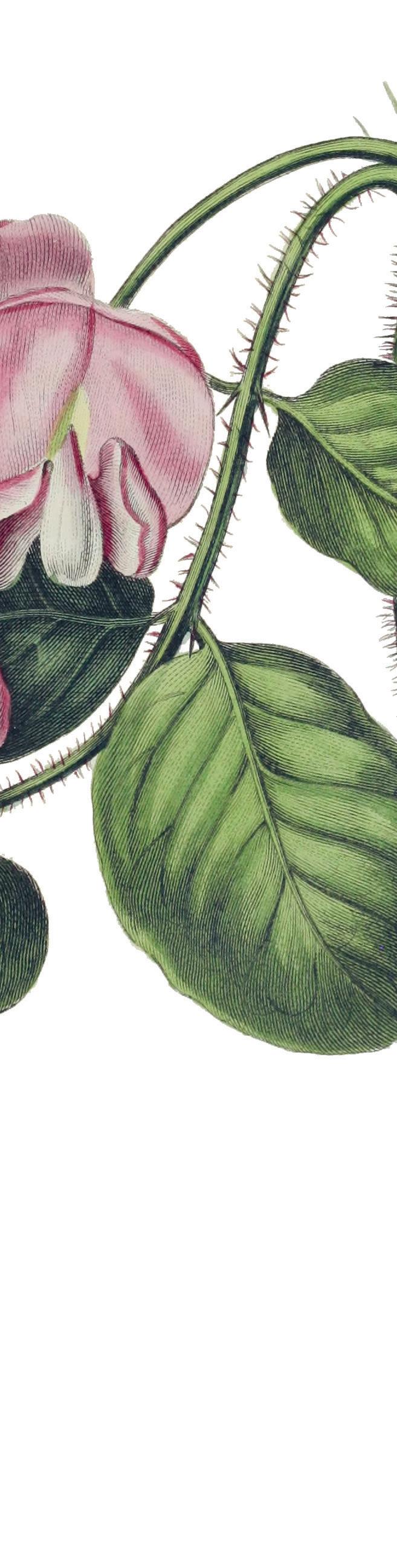 Lomo: S. Watts a partir de Mills, Rosa gallica, en The Botanic Garden de Benjamin Maund, Simkin & Marshall, Londres, 1825. Francis Sansom a partir de Sydenham Edwards, Robina hispida, Rose acacia, en The New Botanic Garden, T. Bensley para John Stockdale, Londres, 1812. S. Watts a partir de E. D. Smith, Rosa centifolia, en The Botanic Garden de Benjamin Maund, Simkin & Marshall, Londres, 1825.
