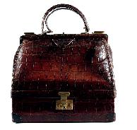 DERECHA Este temprano ejemplar del bolso Malette de Hermès de la década de 1930 está confeccionado con piel de cocodrilo marrón. Se diseñó para las mujeres que deseaban llevar sus joyas consigo, y cuenta con un compartimento independiente en la base que se cierra con el emblemático candado.