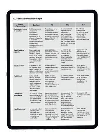 Activitats d’autoavaluació, de coavaluació i d’heteroavaluació per mitjà de rúbriques integrades a cada situació d’aprenentatge.