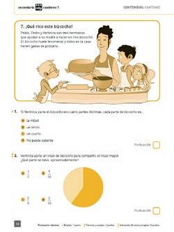El docente visualiza el progreso mediante gráficos y puede ajustar fácilmente el ritmo o el nivel de cada alumno. 15 CONTEXTO: PROFESIONAL actividad competencial 7 A Pablo y a Pedro les gustan mucho los bizcochos. Si Pablo se comiese la mitad y Pedro la tercera parte, ¿cuánto bizcocho quedaría?*