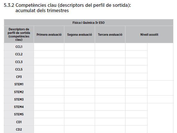 2. les rúbriques de les competències específiques associades a les evidències (activitats) de cada unitat i relacionades amb els descriptors del perfil de sortida.