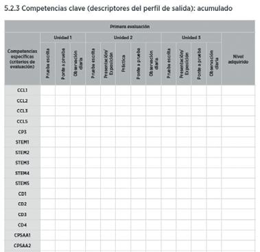 Damos respuesta a la evaluación de las competencias específicas del área y de las competencias clave del perfil de salida del alumnado, conectando los indicadores de desempeño de la asignatura con los criterios de evaluación del currículum.