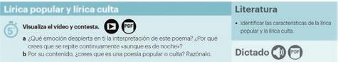 • Audios con canciones para ejemplificar conceptos de poesía y con dictados (en 1.º y 2.º de esO).