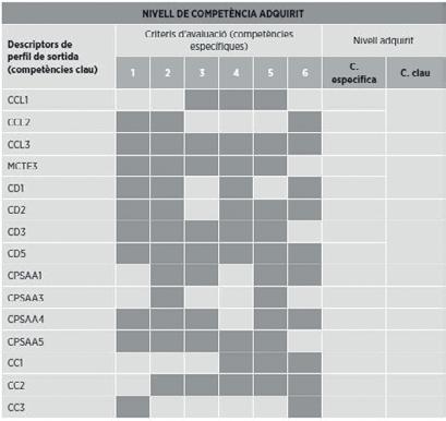 Els indicadors d’acompliment connecten les competències específiques i els descriptors del perfil de sortida.