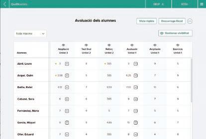 Pots visualitzar, avaluar i comentar els resultats de l’alumnat. també pots exportar-ne els resultats amb Excel.