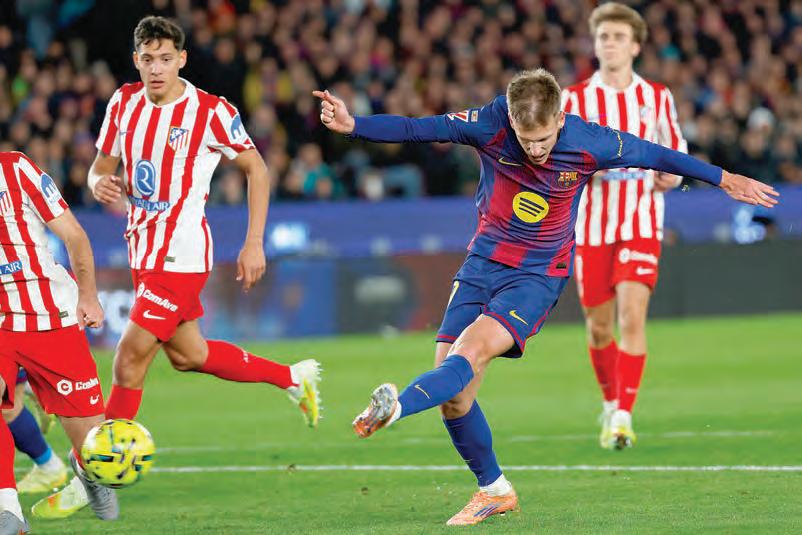 El Barça pudo adelantarse a los 36 después de que Olmo fuera derribado por Pablo Barrios dentro del área, lo que provocó un penal, pero Robert Lewandowski envió su disparo desde el manchón muy por encima del travesaño en un inusual fallo para el veterano delantero polaco. El argentino Thiago Almada rozó el empate para el Atlético a los 80 después de superar a un par de defensores rivales dentro del área. Ferran Torres, quien reemplazó a Olmo, selló la victoria del club catalán en el tiempo de descuento.