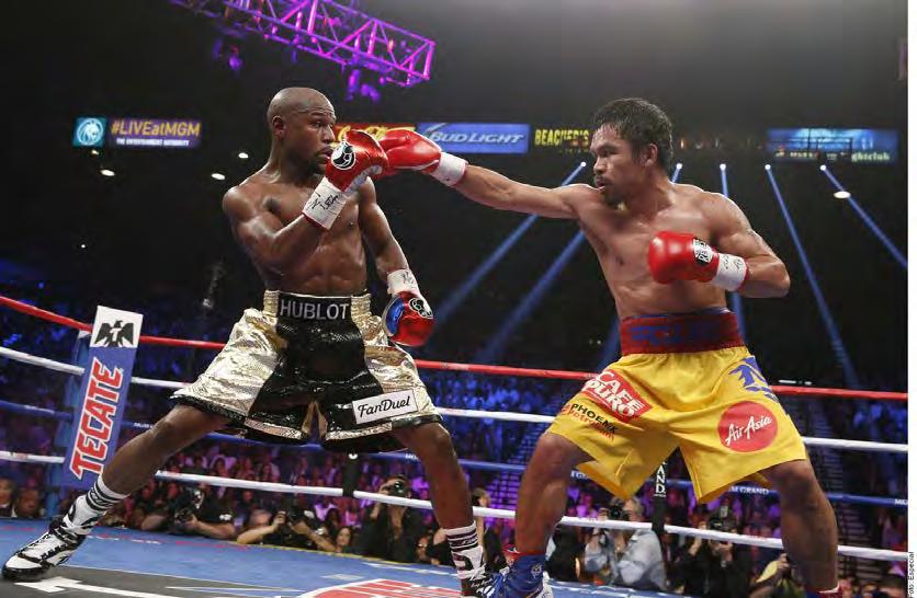 El boxeador Floyd Mayweather Jr. sale del retiro profesional para arriesgar su récord de 50-0. Frente a él, el filipino Manny Pacquiao (62-9-2) llega con ritmo tras pelear el año pasado y con la mirada puesta en terminar con el invicto del estadounidense