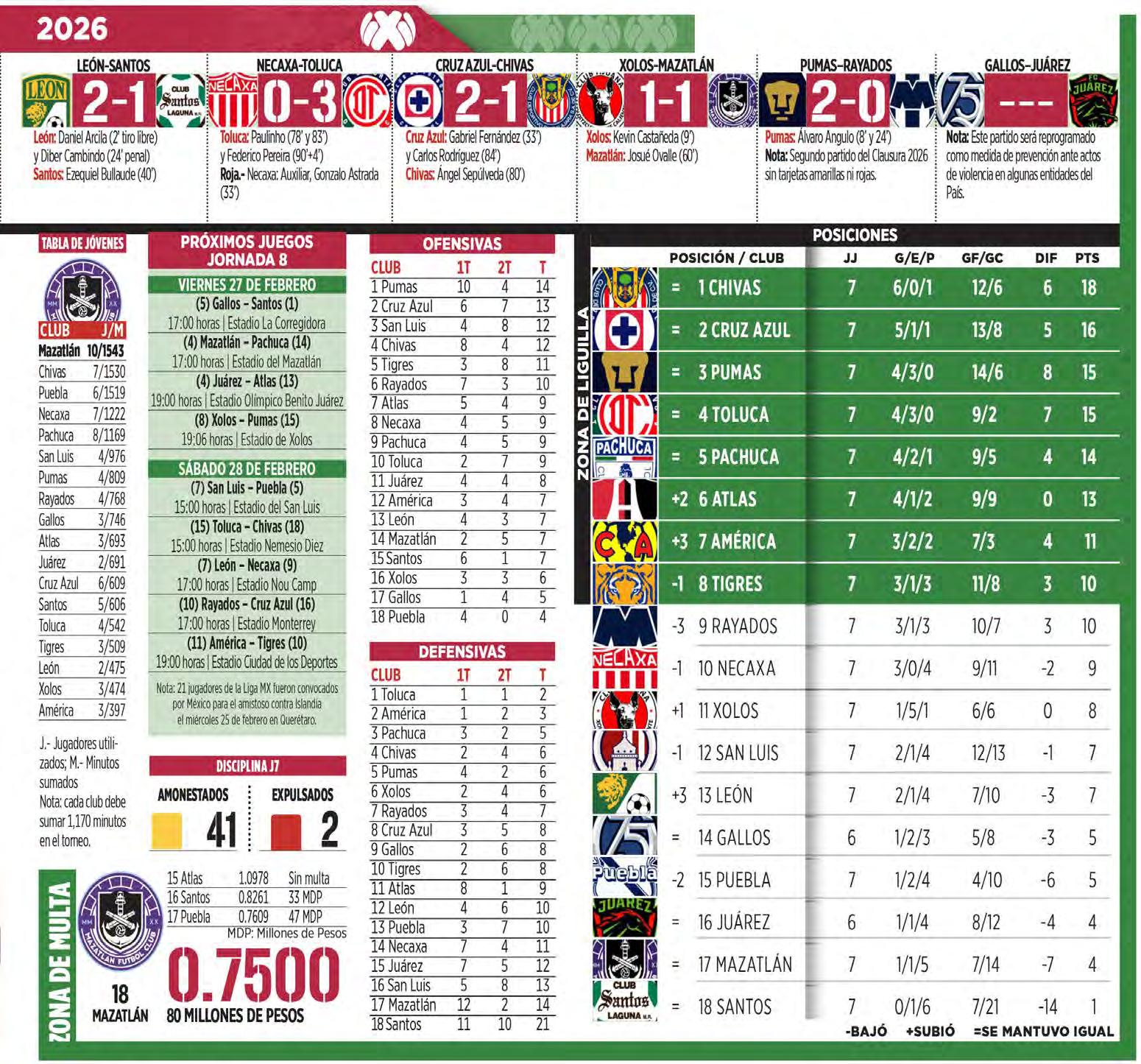 Ya por la tarde, en partido correspondiente a la fecha número siete del Torneo Clausura 2026 de la Liga MX, mis gloriosos Pumas de la UNAM, a pesar de las críticas que le han llovido a Efraín Juárez sobre todo después de ser eliminados de la Copa de Campeones de la Concacaf a manos de San Diego FC, se mantuvieron invictos.
