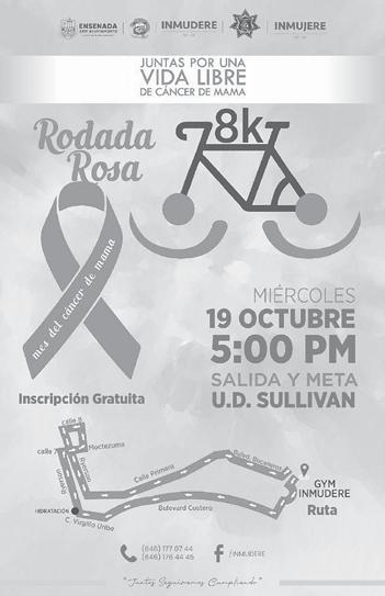 González Velázquez indicó que, para participar en la Rodada Rosa, la inscripción constará de la donación de alimentos no pe recederos y/o toallas sanitarias, que serán destinados a distintos albergues de muje res vulnerables.