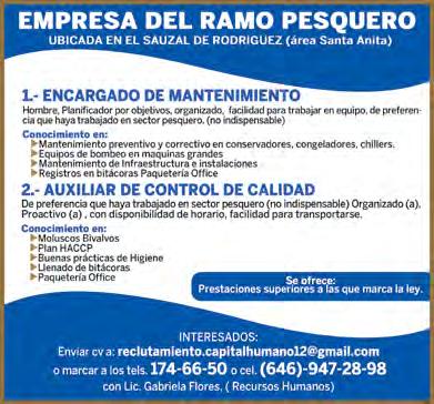 Para mayores informes, pueden comuni carse a los siguientes teléfonos: Caders San Quintín (616) 113-40-58 con Saúl Montoya; Tijuana (664)178-76-12 con Julio Cepeda y en Ensenada al 551 70 30, extensión 73615 y 73300.