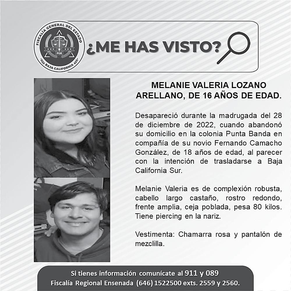 La Comisión Estatal de Búsqueda de Personas del Gobierno de Baja California está solicitando información para localizar a los primos Evans, por lo que se pueden comunicar al número (664) 21003-65 o enviar información al correo electrónico busquedabc@baja.gob.mx