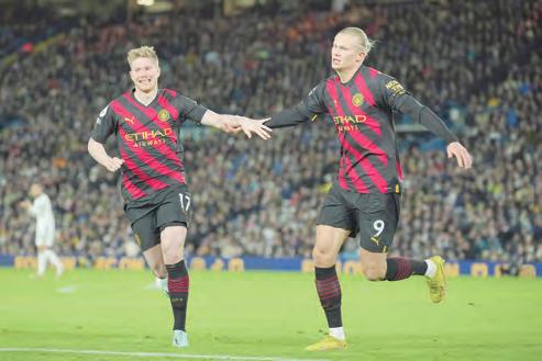 Cortesía Cortesía Con doblete de Erling Haaland, el Manchester City venció 3-1 al Leeds United, llegó a 35 puntos y está a cinco del Arsenal, líder de la Premier. AP Mbappé le dio al PSG el triunfo 2-1 ante Strasbourg. AP
