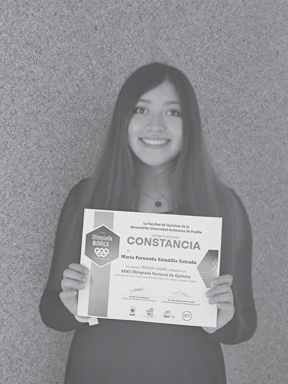 Indicó que durante 2022 participó en la Olimpiada de Biología, donde se posicionó entre los diez mejores lugares, mientras que desertó concursar en la Olimpiada de Matemáticas para poder hacerlo en la Olimpiada de Química, donde obtuvo el tercer lugar.
