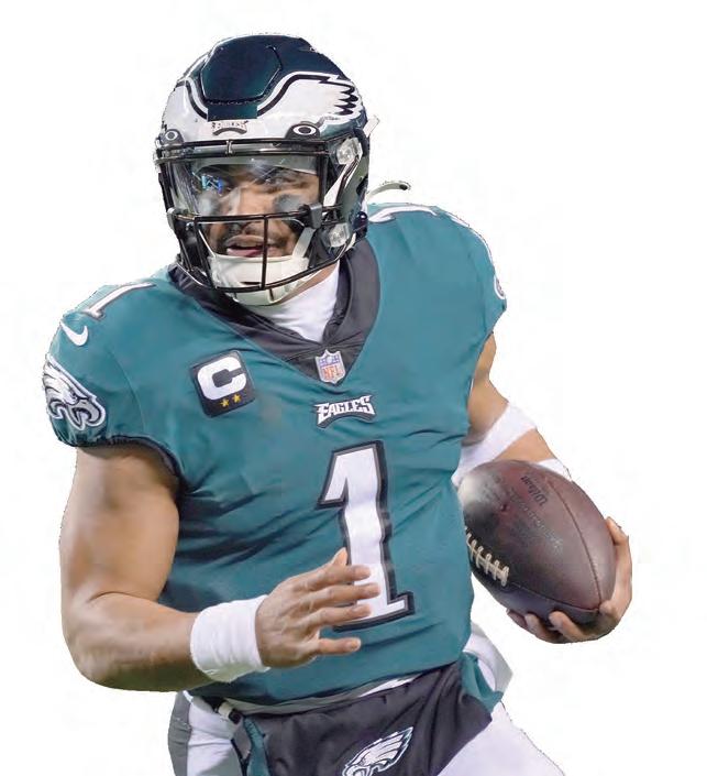Algunos dudaban que Hurts fuera el quarterback-franquicia antes del campamento de pretemporada. Disipó cualquier preocupación después de la primera semana con una victoria sobre Detroit y siguió acumulando grandes cifras y victorias, al punto que fue finalista para el premio al Jugador Más Valioso. Y ahora, el obstáculo principal para que Hurts llegue al Super Bowl —el segundo de los Águilas en seis campañas— es el juga dor seleccionado en el últi mo turno del draft.