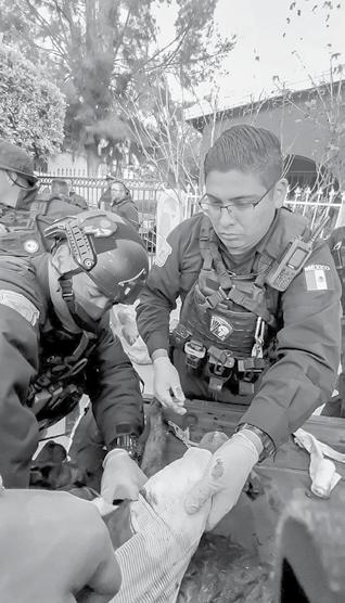 como agente certificado en la unidad canina; su primera comisión estuvo en la delegación de Isla de Cedros. Se informó que los tres elementos heridos se encuentran hospitalizados y su estado de salud se reportó como estable, porque sus lesiones las produjeron esquirlas que resultaron de los impactos de bala contra la estructura de su patrulla.