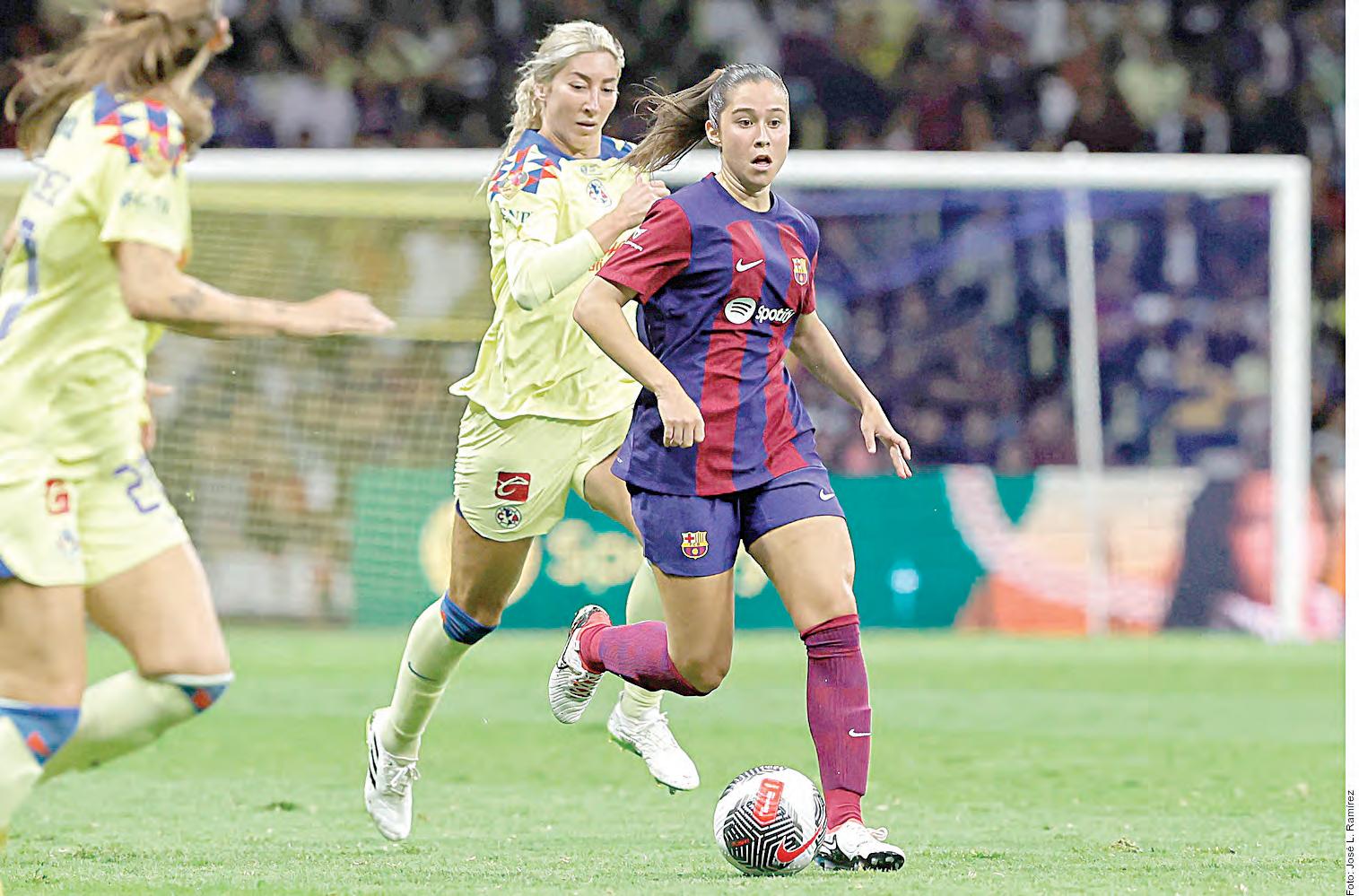 Después, ya en la cancha, América pagó caro la falta de contundencia y un despiste defensivo. Naty Mauleón hizo sudar a las blaugranas, tanto con su disparo al poste como en aquella jugada en la que le rompió tantas veces la cintura a Claudia Pina que esta respondió con una patada merecedora de amarilla. Sarah Luebbert también amenazó dos veces, gracias a su velocidad, mientras que ni Kiana Palacios ni Katty Martínez estuvieron finas.