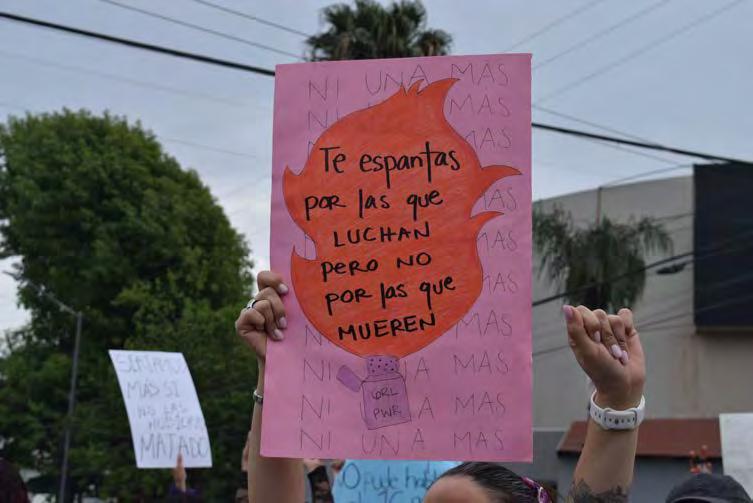 ron pases de lista, en los que se mencionaron nombres de mujeres que han sido asesinadas o desaparecidas; al escuchar cada nombre, las manifestantes respondían “¡Por ella marchamos!”.