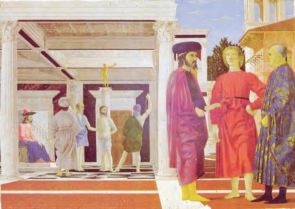 La flagelación de Cristo (c. 1460): Una obra en la que la escena religiosa se combina con un grupo de personajes contemporáneos, separados por un espacio arquitectónico construido con rigor geométrico. La pintura es célebre por su enigma interpretativo y su perfección formal.
