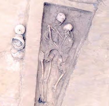 Uno de los ejemplos más conocidos es el de los llamados “Amantes de Valdaro” (Italia, Neolítico), una pareja enterrada cara a cara, con los brazos entrelazados. Durante años se romantizó el hallazgo, aunque estudios posteriores sugieren que murieron en momentos distintos y fueron acomodados juntos, lo que refuerza la idea de una decisión simbólica más que de una muerte simultánea.