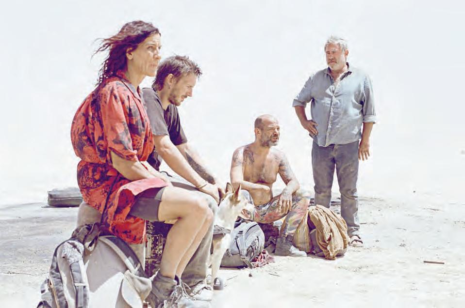 El guion, escrito por Laxe y Santiago Fillol, no piensa en ellos como huecas figuras. Más bien, sabe detenerse en esas acciones y gestos precisos que revelan su carácter. La frivolidad del grupo es matizada por la simpatía que muestran hacia la búsqueda de Luis y Esteban. Cuando padre e hijo los tratan de seguir, ellos los desalientan señalando que su camioneta no está hecha para atravesar el desierto, (lo que recorren a ratos ni siquiera se puede describir como caminos) una preocupación honesta por su seguridad.